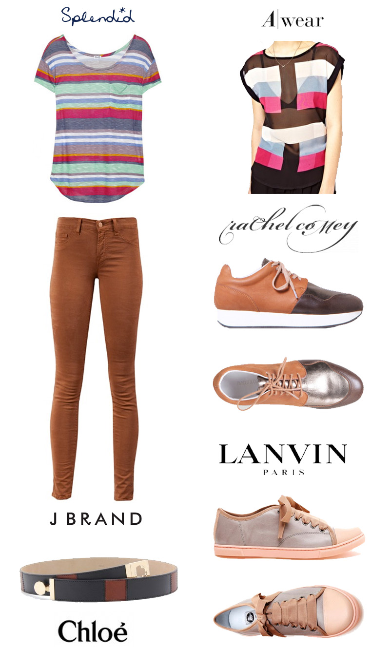 1. Acne Long Sleeve Blouse. 2. Equipment Slim Signature Colorblocked Blouse. 3. Elliot Rhodes Tan Skinny Leather Belt with Gold Horn Buckle. 4. Linea Pelle Vintage Perforated Hip Belt. 5. Keds Pointer. 6. Mel Shoes We’ll Have a Wiffle Ball Sneaker. 7. Wrangler Jess High Waist Skinny Jeans. 8. Reiss Farrah Slim Straight Leg. 9. Imogene + Willie Elizabeth Straight Leg.